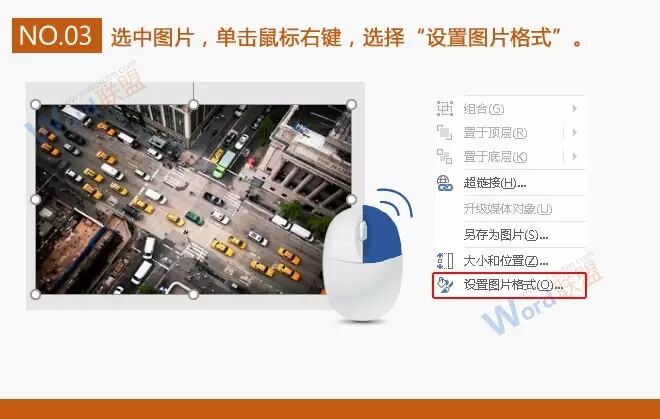3、选中图片,单击鼠标右键,选择“设置图片格式”。