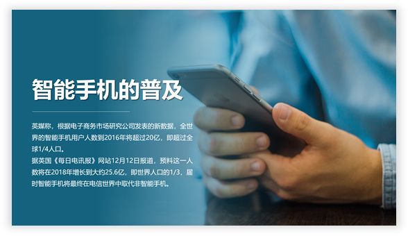 对于单图对单段内容,一般都使用全图来解决。目的是让页面更加丰富以及有冲击力,如图所示。