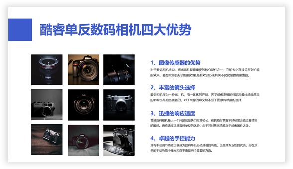 举个例子,下图是关于相机的产品介绍,这样排版显然没有冲击力,勾不起别人的兴趣。
