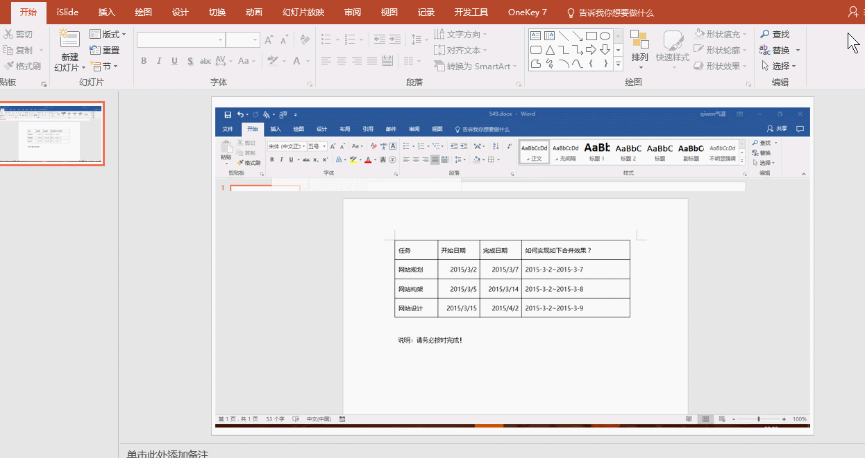 首先,我们假设用Word做了一个时间按票表的票据,然后用截图的方式截到了PPT里。这一步主要是为了制作本例的“图片票据“素材。这里用到一个PPT巨牛的一个截图功能,就是你只要windows的窗口都开着,PPT的截图可以随便选对应的窗口截图。看动图操作