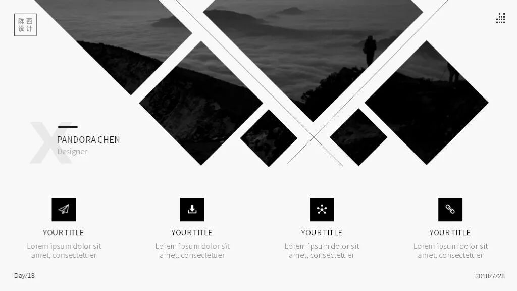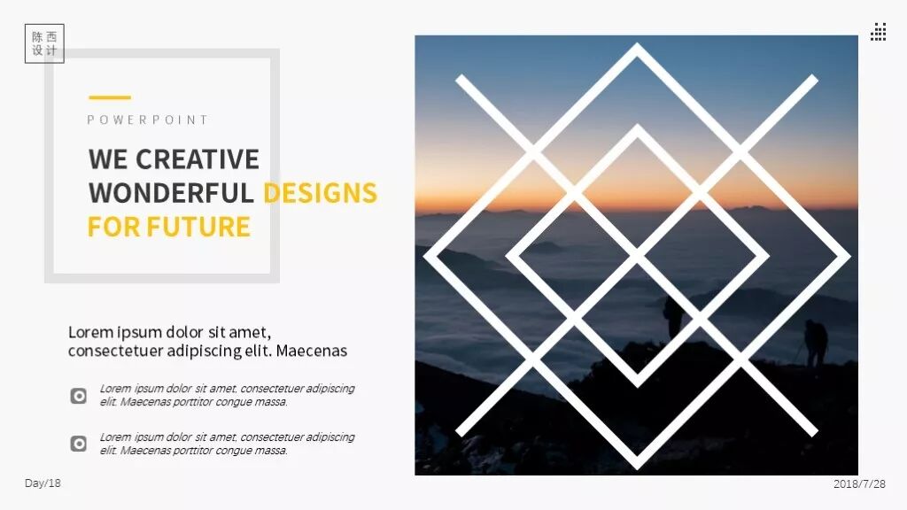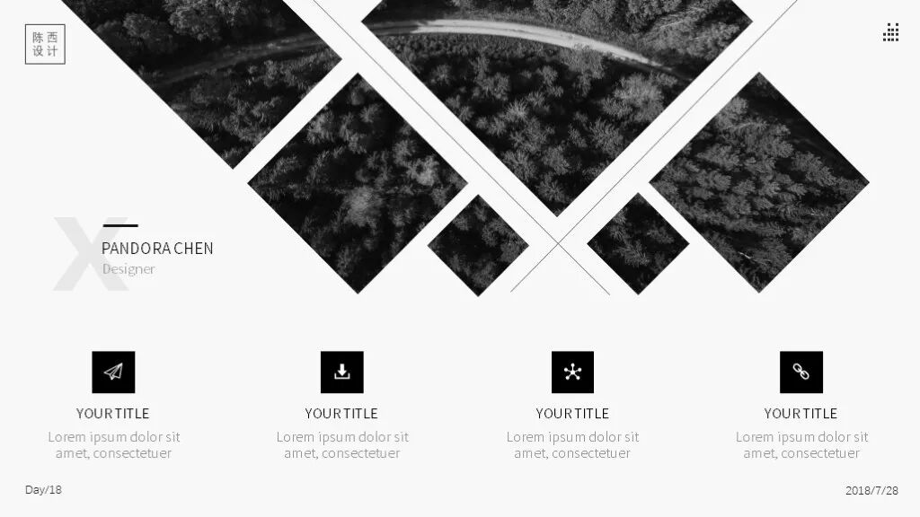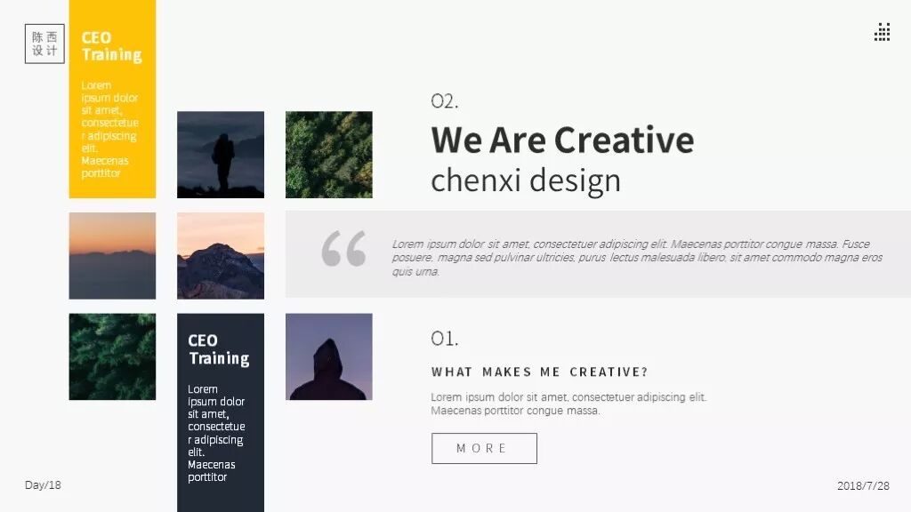 这里图片的创意处理使用了图片和形状的混排,形状在这里处理的效果比较不错,可以仔细体会一下,注意间距的调节。
