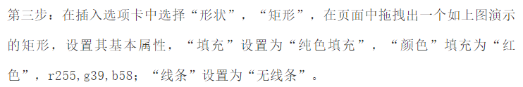第一步:在插入选项卡中选择“形状”,“矩形”,延着左上角放大到整个页面,鼠标左键单击“设置形状格式”,设置其基本属性,“填充”设置为“纯色填充”,“颜色”填充为“灰色”,r29,g39,b59;“线条”设置为“无线条”。