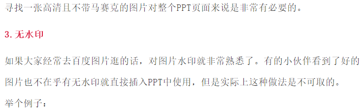 图片的清晰度较高,与主题也相符合,但下方的水印会对观众观看PPT造成干扰,分散观众的注意力。所以选择图片时,选择无水印图片或者去除图片水印是非常有必要的(当然也有各种方法去除水印,这个后期再讲)。