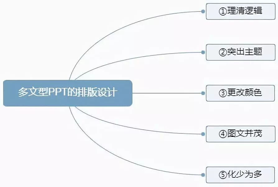 多文型PPT设计的第一步就是“理清逻辑”,所谓理清逻辑指的就是要梳理清楚PPT中文字内容的逻辑关系。