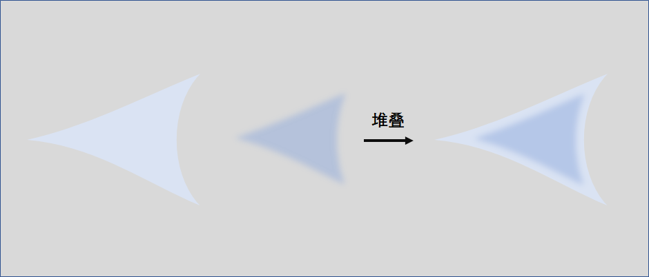 将上一步得到的形状复制一个,一个颜色调整为浅蓝色;另一个调整为深蓝色,透明度50%,在效果中添加柔化边缘,其大小根据实际情况合适即可。将两者对齐堆叠到一起,得到如图所示效果。