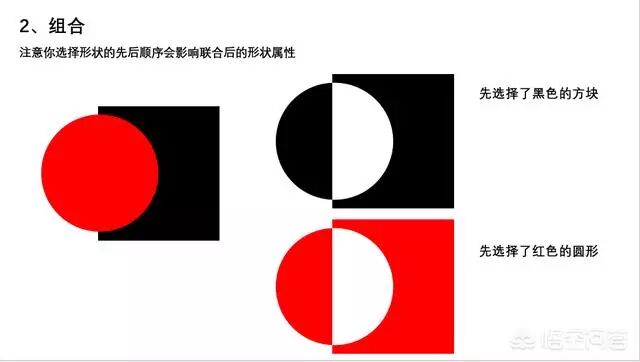 2、组合:将两个形状去除掉重合部分进行组合,生成新的形状。
