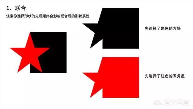 1、联合:将两个形状的外框进行联合,生成新的形状。