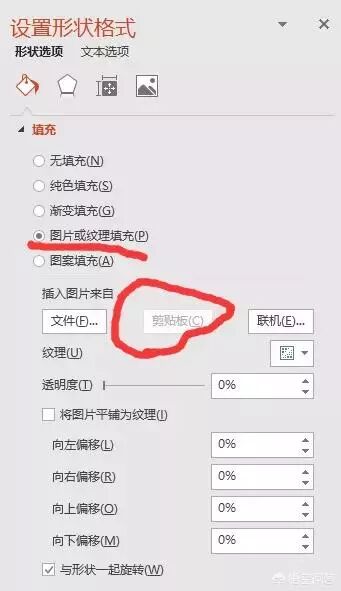 先按Ctrl+x或者单击右键剪切图片,选中组合后的形状---单击右键---设置形状格式---点击图片或纹理填充(P)---然后点击剪贴板