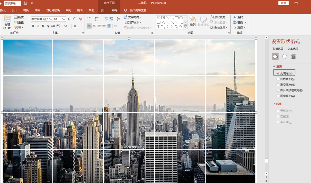 如下图所示,在图片上方插入表格,利用形状格式工具,将一张完整的图片拆分若干个部分。