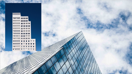举个例子。我们在介绍学校、公司等机构时,常常会用建筑的作品作为封面的地图,那如果想用多个建筑呢?机械的排列在一起吗?这时,用双重曝光的效果既达成了目的又美观,逼格也高。