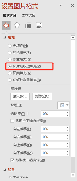 插入一个无边框的矩形,在【设置图片格式】里选择【图片或纹理填充】把想要设置透明度的图片填充进去就可以了。