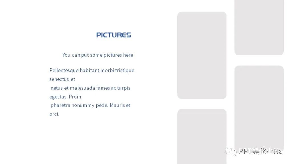 什么,一页PPT还能放下50张图片? 相信很多小伙伴还在为PPT排版而发愁吧?今天给大家安利一些经典不过时的图文排版方式,不要错过哟! 对于一张图片,常见的排版方式有:上下排版,左右排版,其实还有居中排版: 一张PPT里放50张图 一页PPT就那么大,如何方式那么多张图片呢? 我们先来看看4张图片怎么放: 这些排版相较于传统的对齐是不是更有吸引力呢? 当然,对齐排版方式绝对是必不可少的 如果单单是这样放置就会显得页面具有压迫感 试着将图片进行三维旋转,空间感立马显现 除此之外,三维旋转还是容纳超多图片的技巧 一页PPT放上50张图片都不在话下 总结页可以使用万能的圆 想让页面不单调可以尝试将圆“三维化” 这样看起来是不是就没有那么单调啦 其实就是将图片进行大小和颜色的调整,产生视觉差,让人以为是在一个空间内