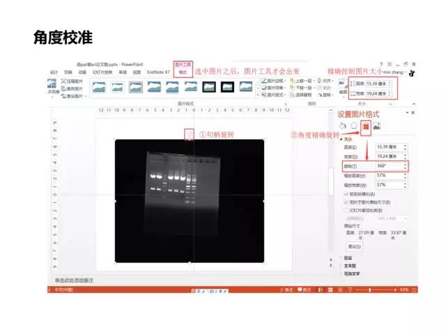 ①点击图片,再选中图片的句柄进行旋转,方法简单,但是旋转角度不容易精确控制;