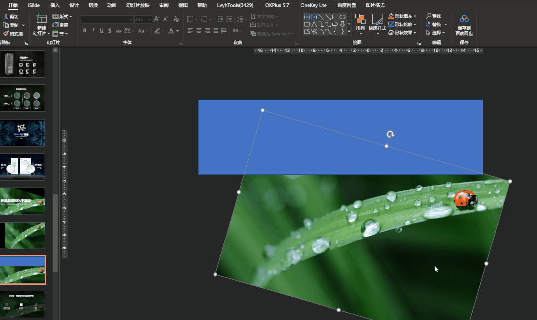 这是一张已经配好图片的PPT,客户要求要保留露水和瓢虫。