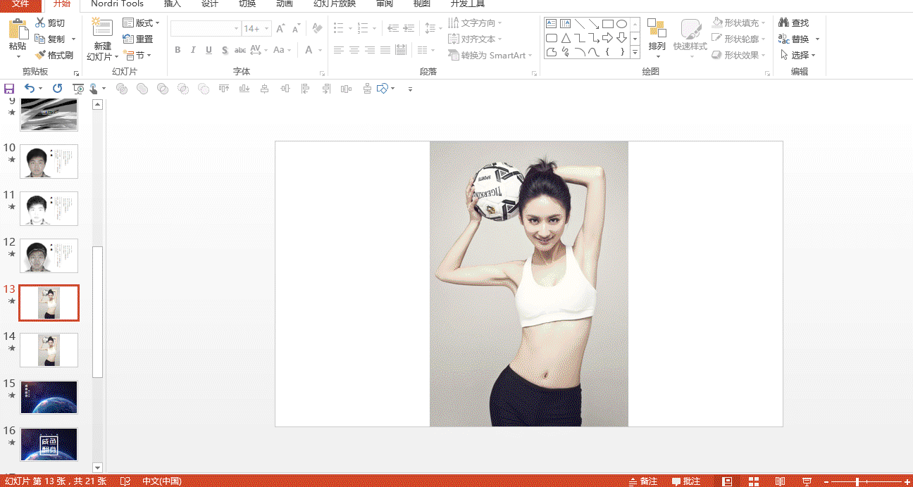 同理,一张主体居中的人物图片,比较难排版。可以复制多一份图片,两边裁剪,让页面中部空出更多空间。