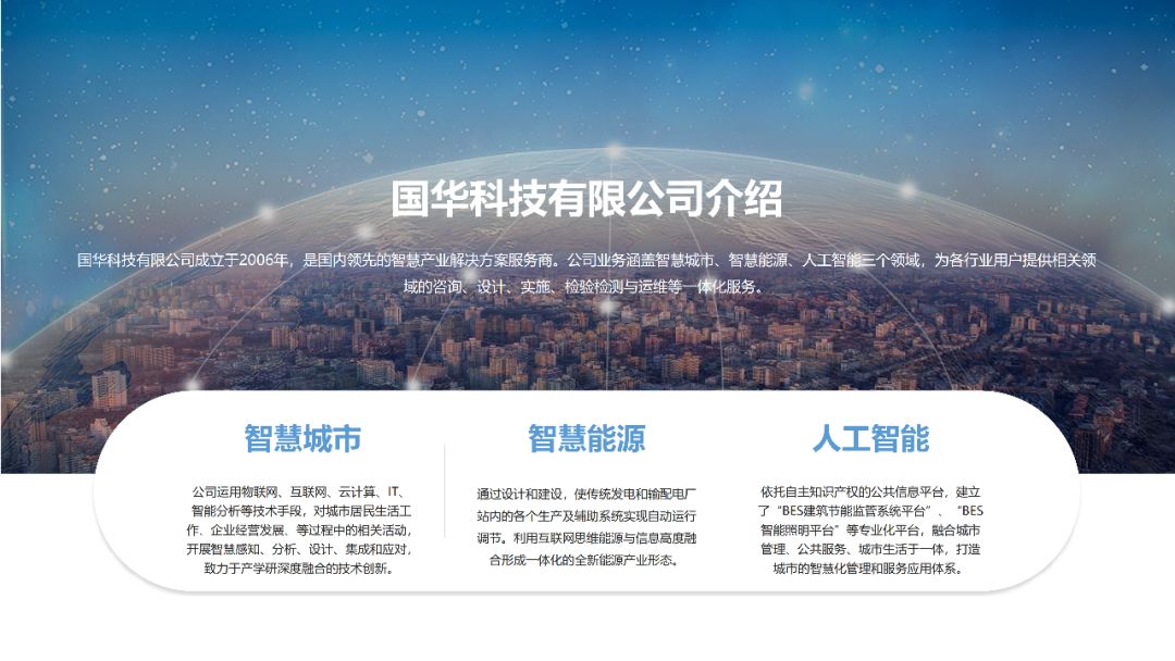 这样利用全图背景设计,风格虽简约,但也能突出公司的高端大气。