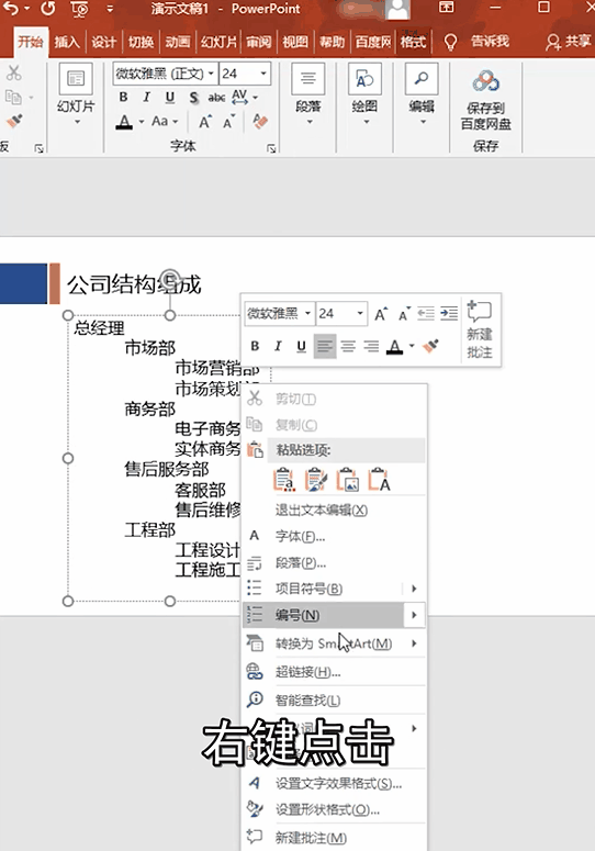 点击鼠标右键,选择转换为 SmartArt,选中组织结构图,一个漂亮的组织结构图就完成啦!