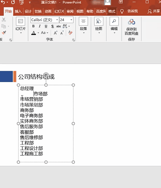 首先在文本框内输入文本内容,然后按 Tab 键按等级调整文字层级。