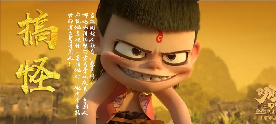 为了更好地呈现出图片中哪吒的搞怪的形象,我们把图片再次方法,局部呈现人物的面部表情,调整后的效果如下: