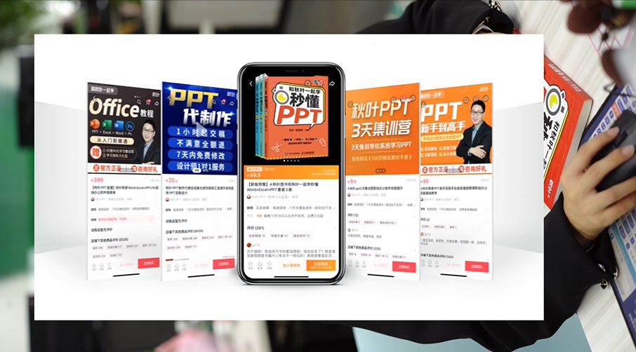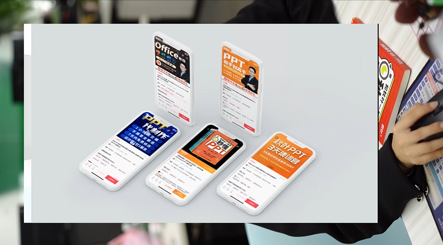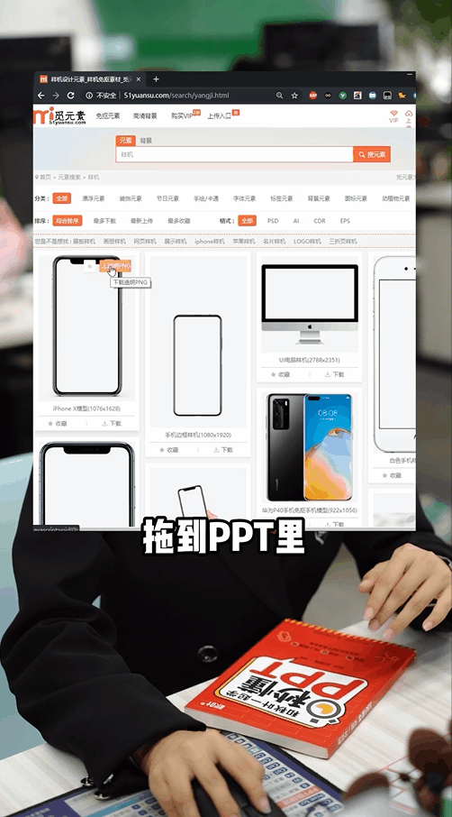 ❷ 接着把「样机」素材拖到 PPT 中,再把图片复制到 PPT 中,稍作调整,就搞定了啦。