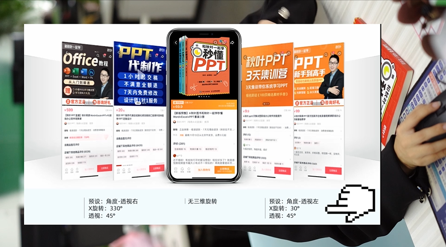 直接「抄功课」,下图中的效果用三维旋转就可以做到哦!