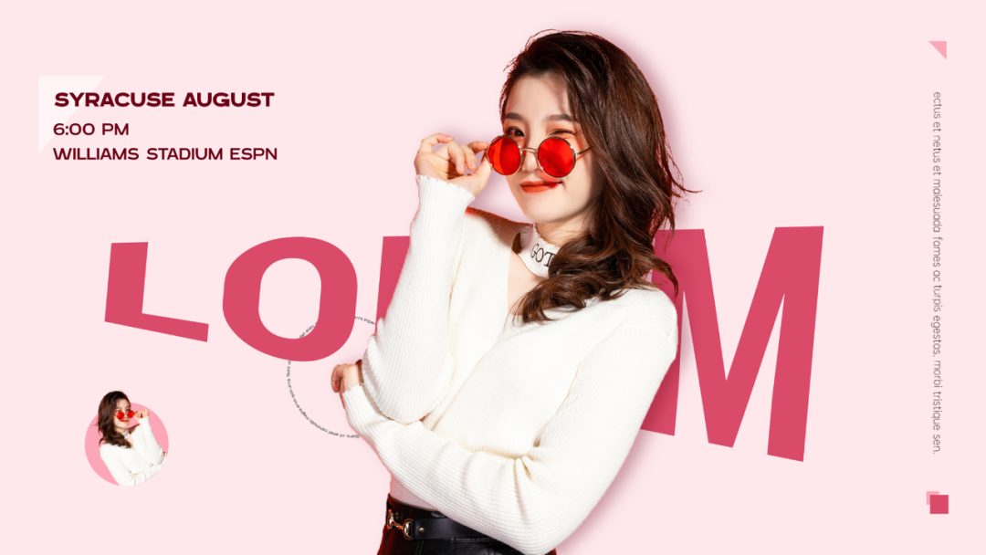 将人物放大置于页面中间,给人物背后添加添加阴影,最后在右侧放置一些文字即可: