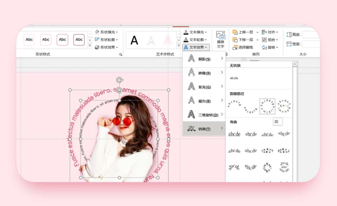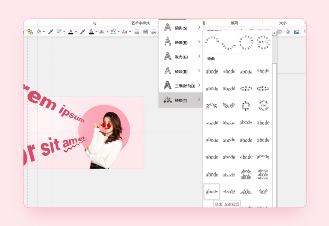 拖动文字框的上下左右,文字会根据框的大小,对内部的文字进行形变,效果也很好~