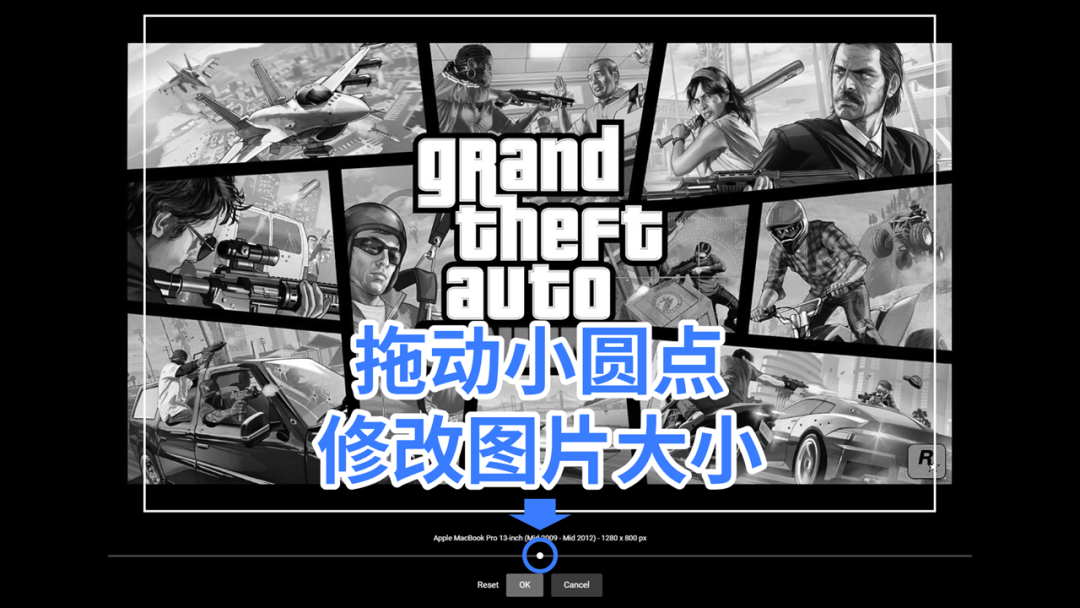 如果你想要调整图片在屏幕内的大小、位置,那你可以点击图片-【Re-position image/调整图片位置】,接着你可以通过用鼠标拖动图片、或是拉动图片下方的小圆点来调整图片大小: