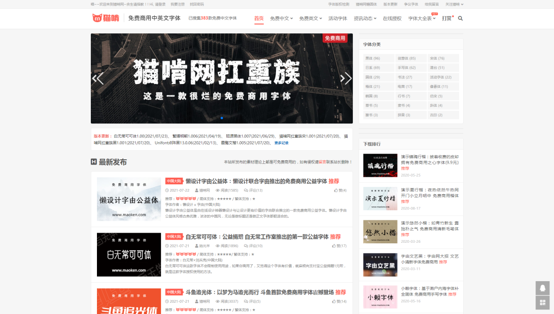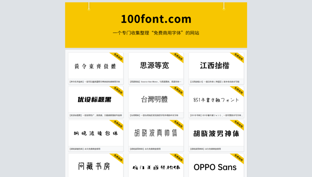 这个网站目前收集了383种免费可商用的中文字体,以及83种英文字体,而且都提供了下载渠道,简直让人感动到哭!