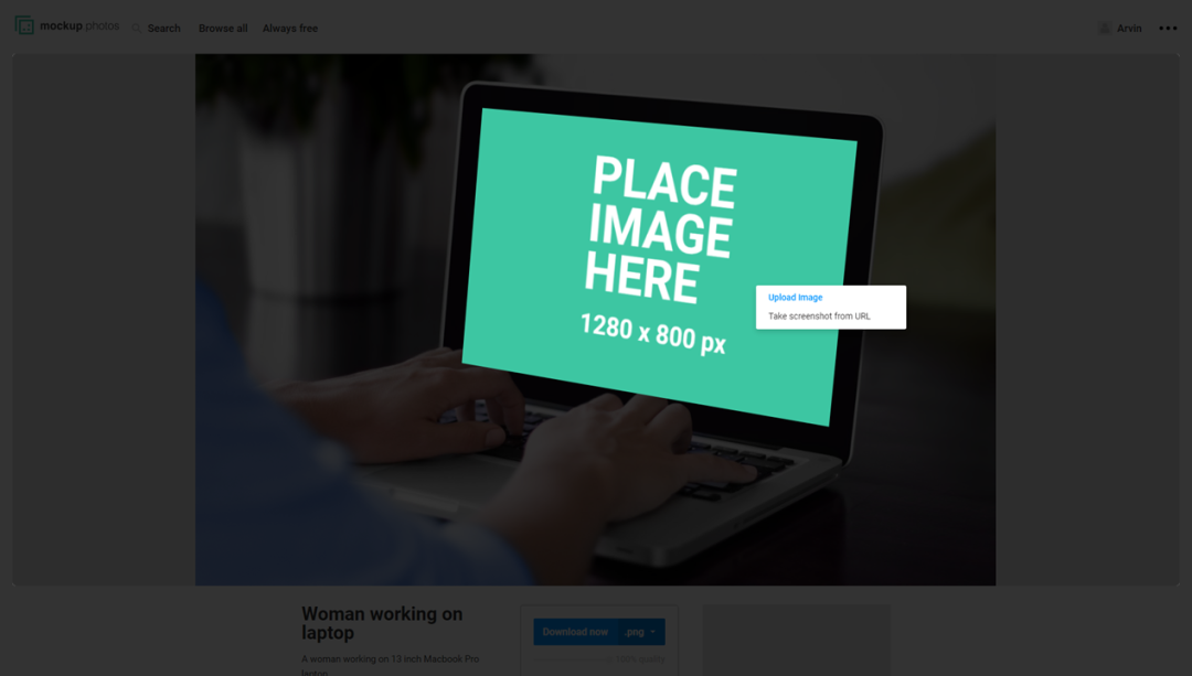 你只需挑选一个你喜欢的样机模型,点击绿色区域-【upload image】,将图片上传上去,即可将绿色区域替换成自己的图片: