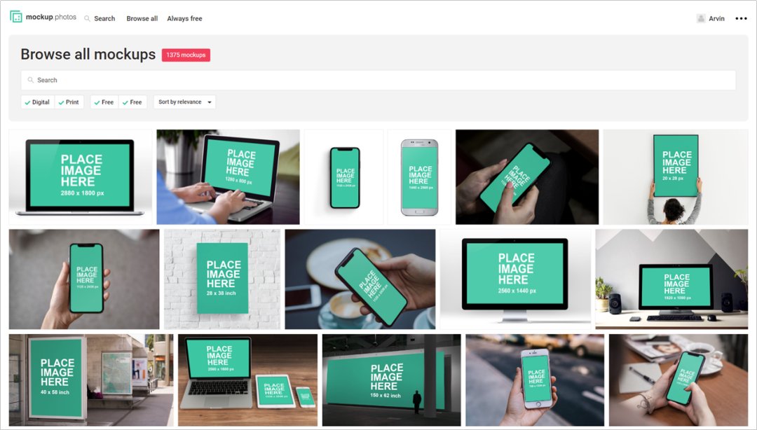 网站里有多达1500+个免费样机模型,包含电子产品、各种印刷物模型: