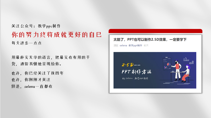 顺便提一句:这里背景用的光影素材,包括后面的案例里的背景素材,大家都可以回顾我之前分享的:借助光影,打造空间感PPT