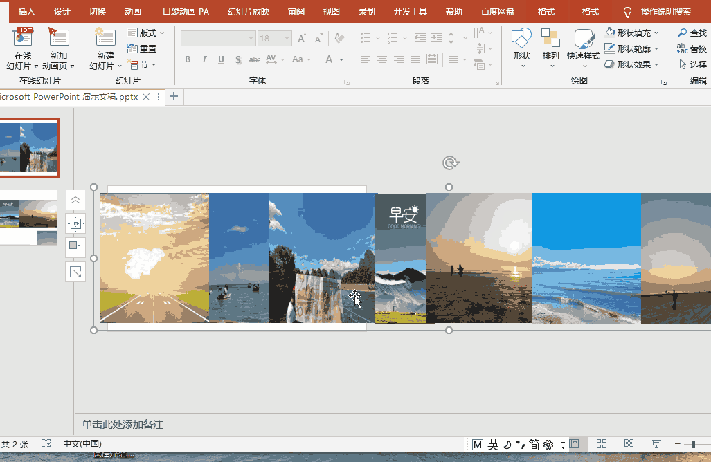 如下图的视频,其实是用PPT做的图片排版轮播效果。1、将图片插入到PPT页面