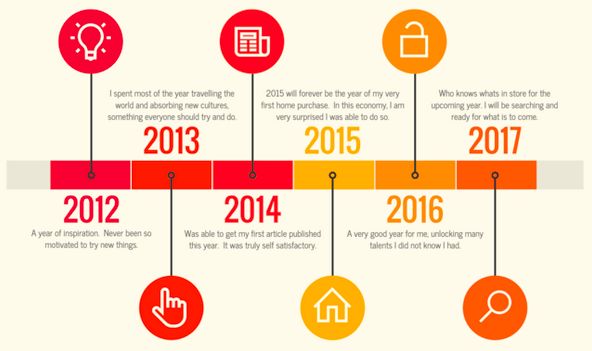 时间是个宽泛概念,如发展阶段、日期安排、历史进程、时间管理等,重点是以「时间」为线索传达信息。