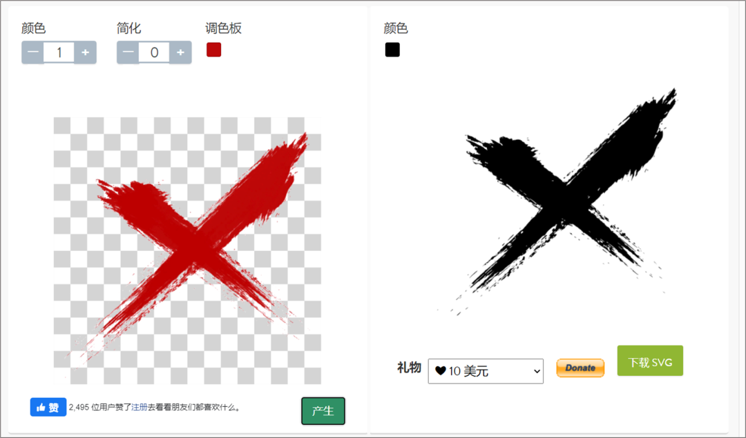 这个时候我们用这个网站将图片变成SVG格式,就能轻易更改它的颜色了。
