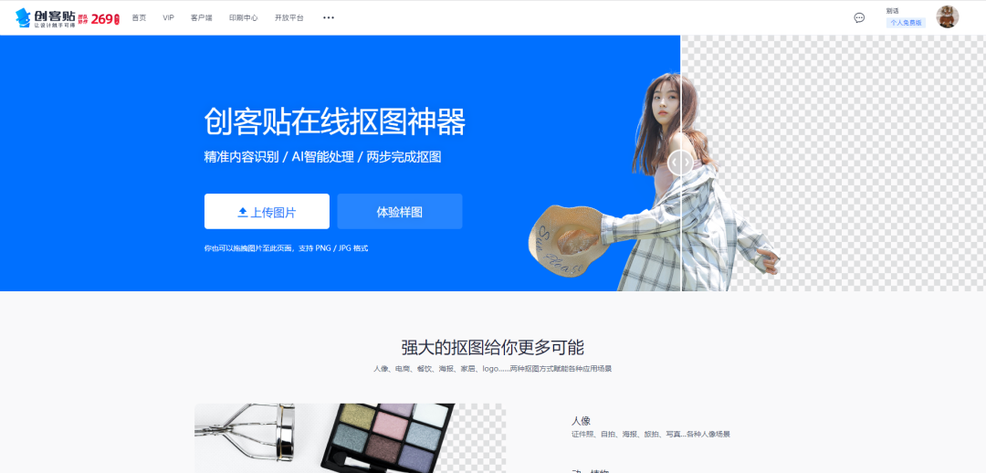 这是“创客贴”这个网站为数不多的免费功能,他能精准的识别内容进行智能AI处理。