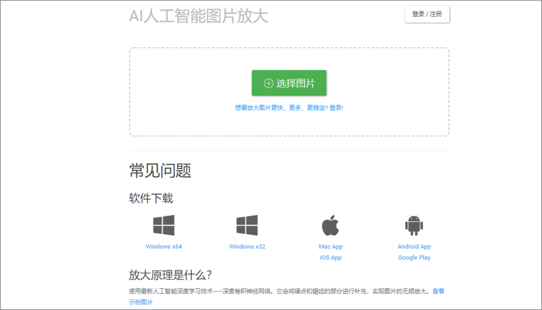这个网站可以免费放大图片,通过AI算法提高图片的清晰度。