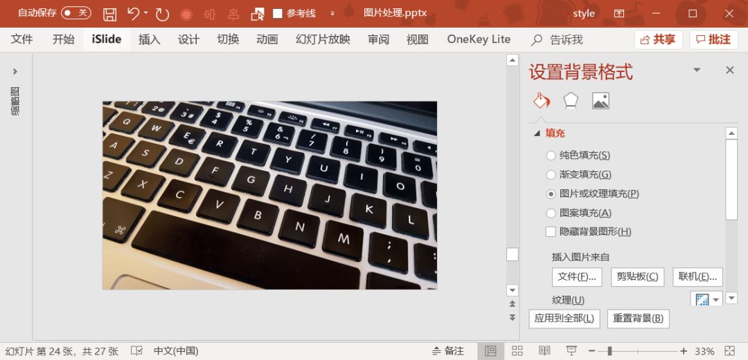是的,很多小伙伴一定会好奇,为什么要用两层完全相同的图片,其实就是为了这个“幻灯片背景填充”。