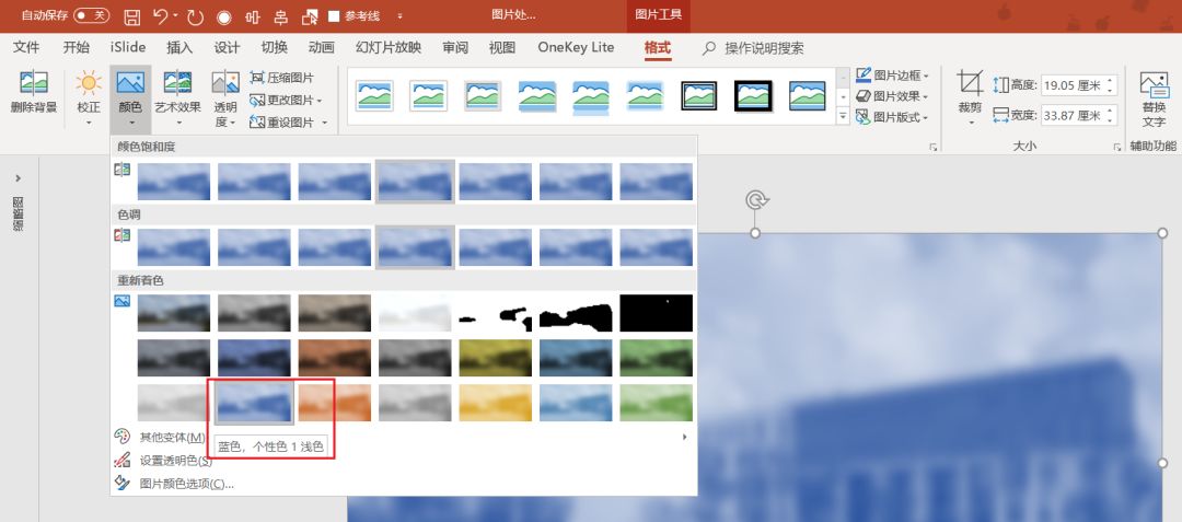 然后用前面介绍的重新着色功能,把图片改为蓝色,