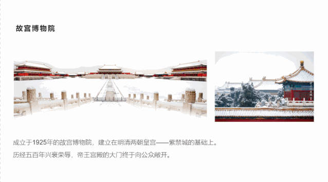 我们完全可以进行类似的操作,放大图片加上文字,PPT立马大变样:很多人都习惯了在PPT里放小图,掌握一定PPT技巧的小伙伴甚至会把小图切割开来,保证版面的平衡: