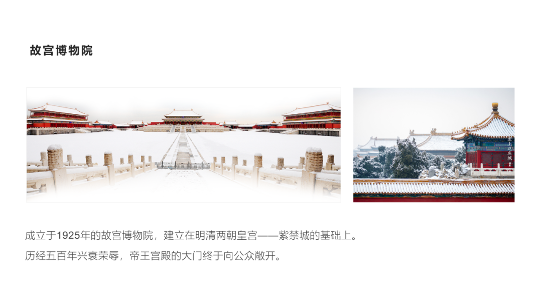 首先要给你分享一招爆炸简单但又实用的技巧,那就是放大图片!什么意思呢,以开篇的这个反面案例来说:忽视文字内容,我们可以直接将图片放大。具体的尺寸是,放大到图片宽度和页面一致即可。接下来你可别眨眼,加上蒙版和文字,页面立马大变样:源案例中的另一张图片也能这么操作,给你们看一看加上文字之后的呈现效果,是不是好看多了?很多风景图放在PPT里并不好看,其实就是你把它放太小了!再比如这个案例: