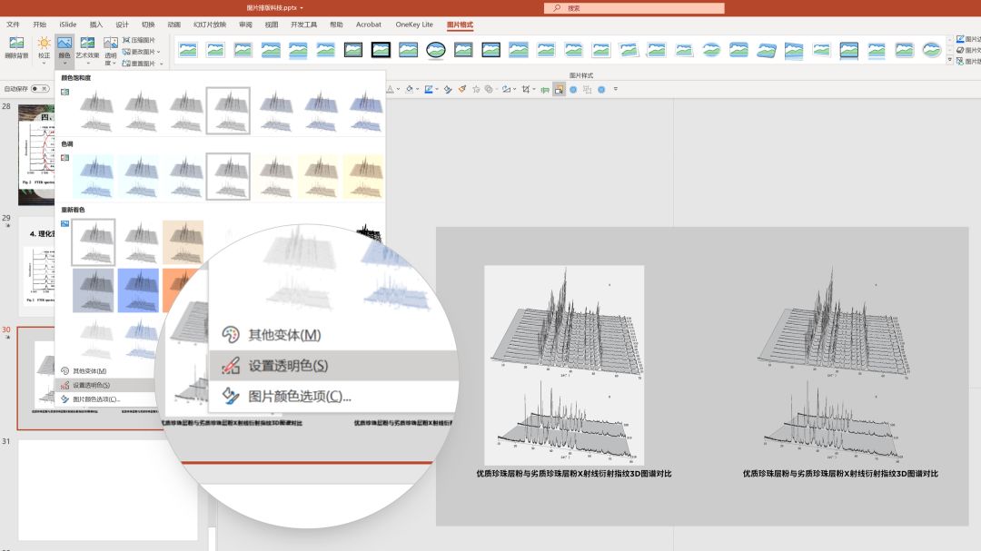 然后,利用 PowerPoint 软件自带的 [设置透明色] 功能,去掉图片底部的白色色块即可: