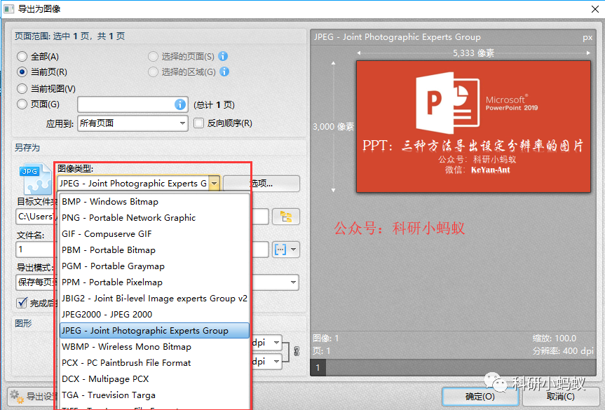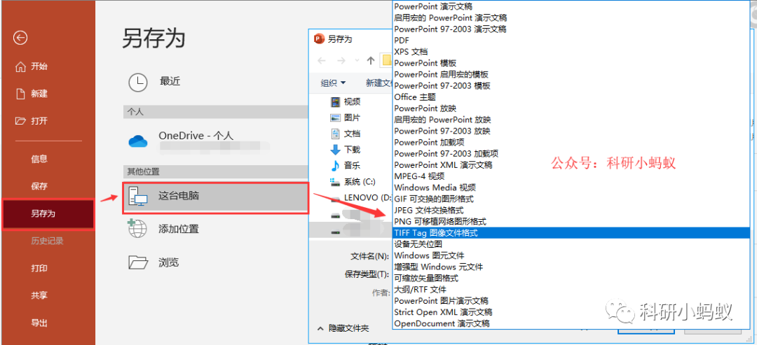 PPT导出图片:文件-另存为-选择文件夹-保存类型。