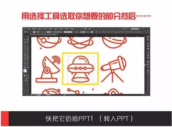 “素材01”——宇宙空间图标 Still分享给各位的PPT就是从设计类网站中下载的Ai文件转换而成。那么什么是Ai呢?Ai全称是Adobe illustrator,是Adobe旗下的一款矢量图(有关矢量图图与位图区别请自行百度,不再赘述)设计软件。