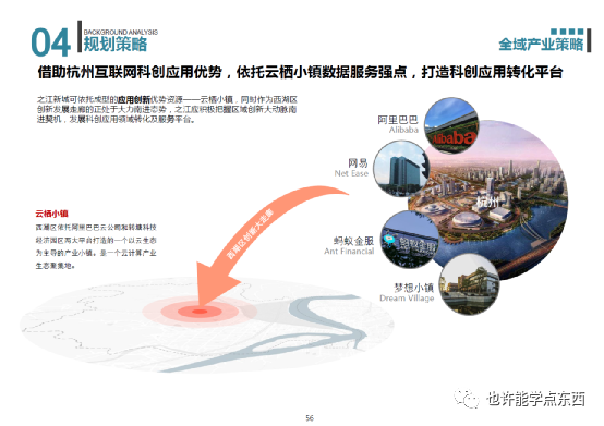 第四种:发散。这种排版的特点在于找到发散点,依托这一点,发散式的分布排版一些图片,这些图片很好的表达、呈现发散点的特点与功能。下面三张图都是很经典的例子,第一张依托平台发散,展现平台的功能定位,第二张借助杭州地址,发散展现杭州互联网优势龙头企业。第三张由水案发散,展现水岸生活场景。