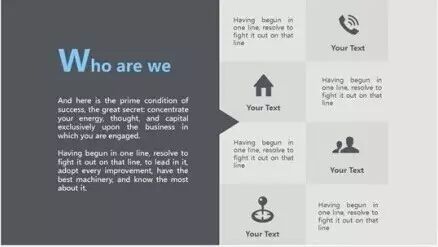 当然右边的大段文字部分也可以换成图片,左边的图标处也可以换成图片,设计方法都是相通的,要学会举一反三。