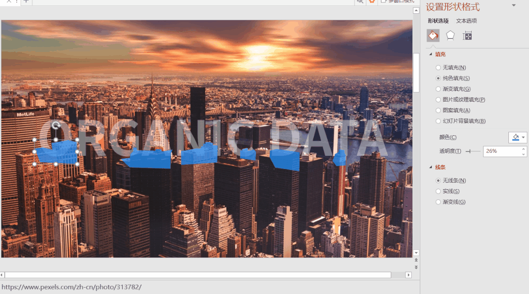 利用形状中的“任意多边形”,在建筑与文字相结合的地方,沿着建筑边缘绘制任意多边形。