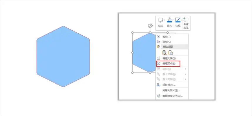 我们知道,在PPT默认形状中,圆角六边形是不存在的。