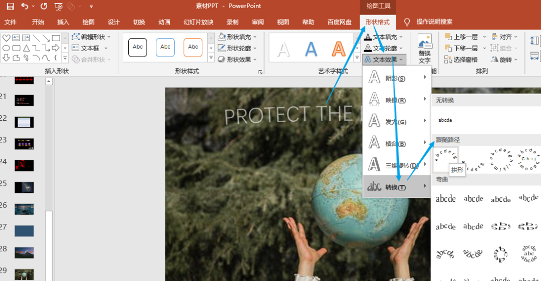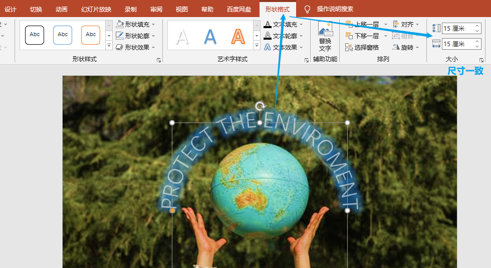 例如下图,看起来文字跟圆形的地球匹配起来,有点生硬;