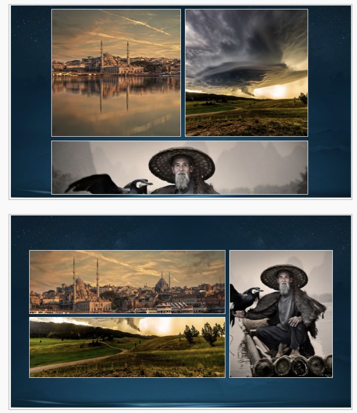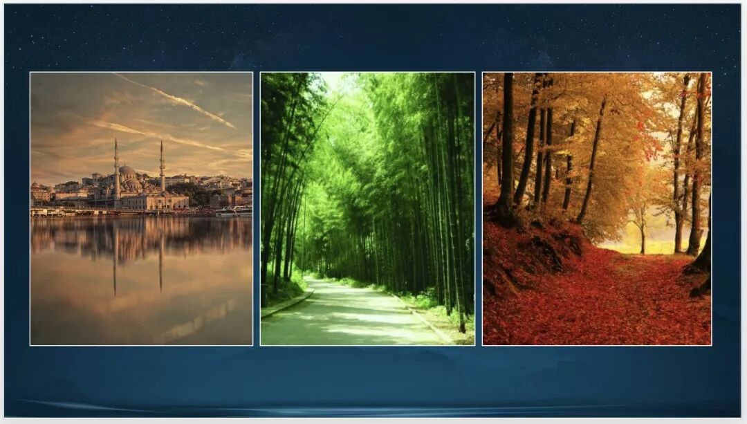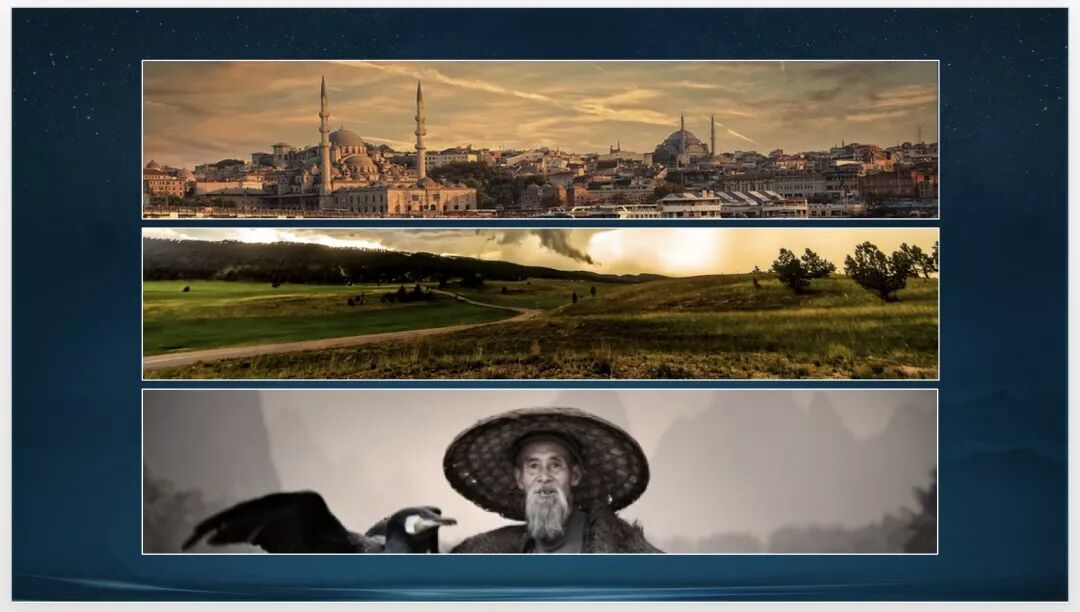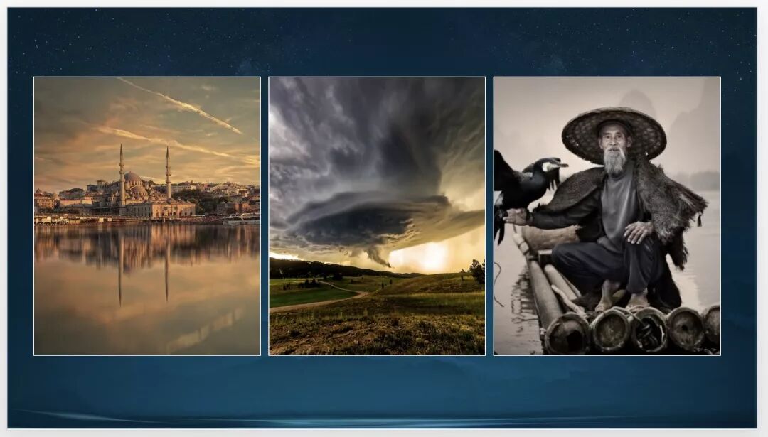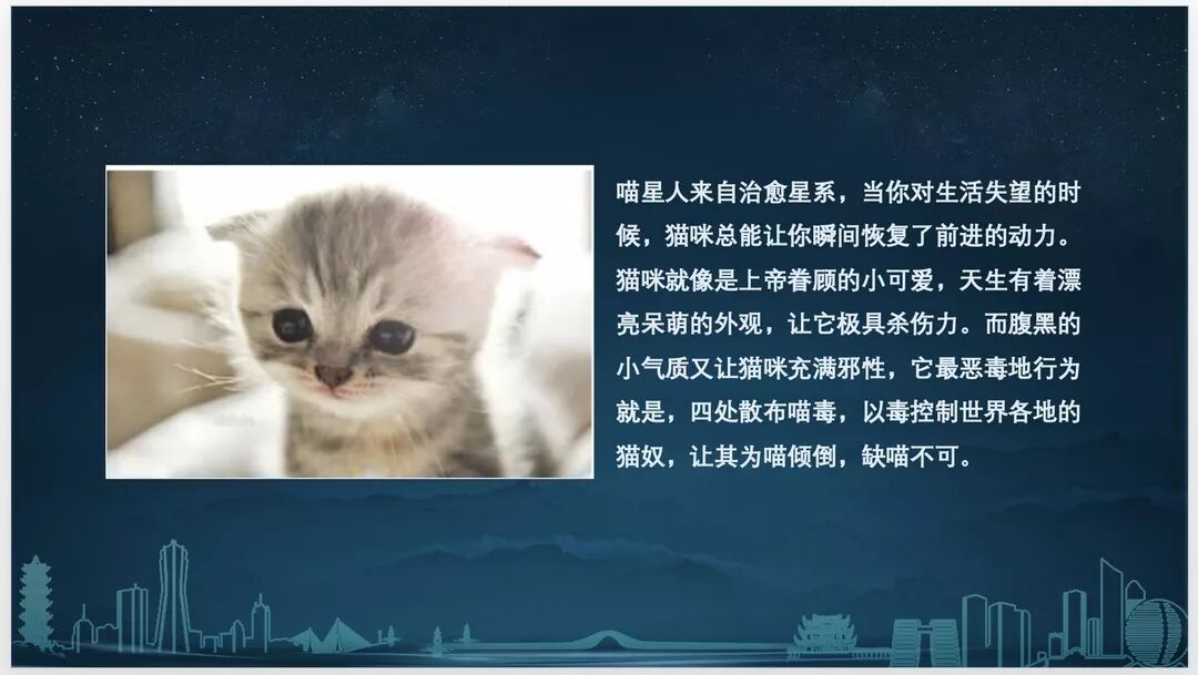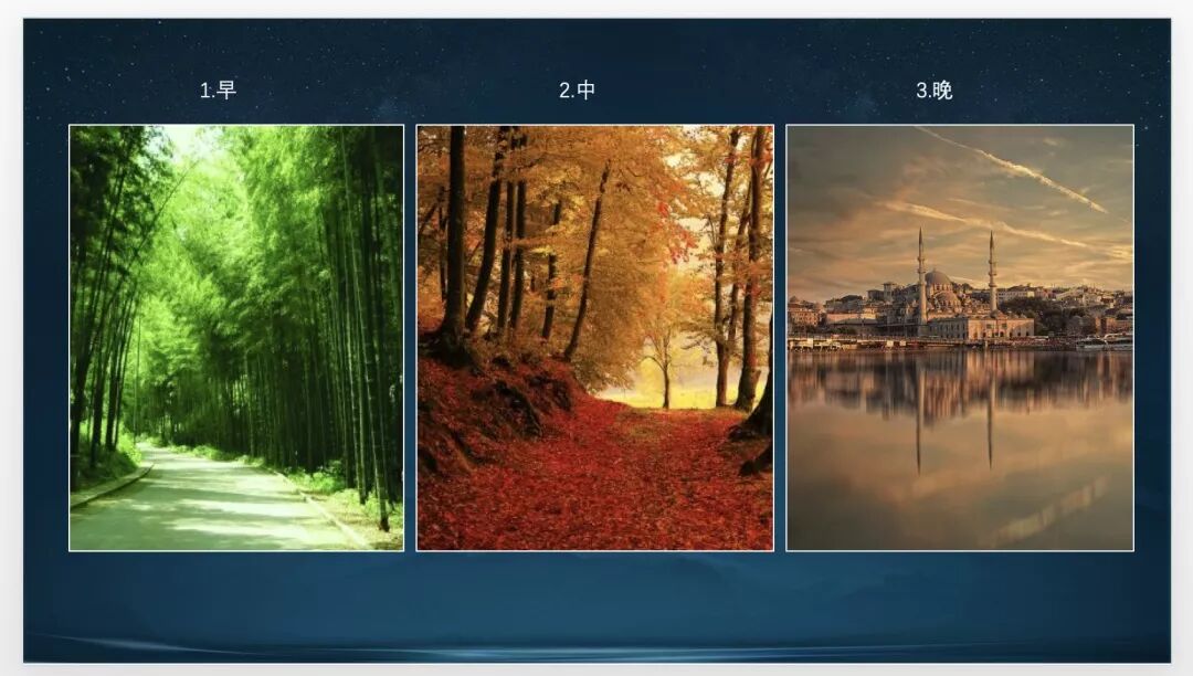 引言 单图片排版的补充 一张图片的排版在之前的课程里已经讲过很多了,这里再补充一个比实用的技法: 当我们要放的图片,内容比较宏大,构图也比较全面,这时我们可以试一试全屏的展示方式: 将图片直接调整至全屏大小,然后将文字说明放入页面中,做到图文并茂,最后通过向文字的下层适当添加色块来增加文字在底图上的分辨度: 这样一页简约又大气的PPT页面就完成了。 多图排版的技法 从两张图开始,我们就开始讲多图排版了。 在一开始,我们需要先形成一个排版意识:有时候,我们需要将大量的整版文字也要视为一张图片来进行排版。形成这样的意识,会让图文搭配更加美观。 比如前天课程中说到这个页面,猫图片和文字内容是相对应的两块区域,我们在排版时可以视为两张图片进行排版: 而具体怎么进行多图排版呢?首先版面需要做到排列整齐,所有的图片都要对齐排列,形成一个常见的区域结构。 1 . 两图排版常见结构: 在两图排版下常见的结构,可以—— 左右平衡: 上下承接: 立体穿插: 2 . 三图排版常见结构: 而在三图排版下常见的结构,可以—— 一横结构: 一竖结构: 三维穿插: 三维穿插这个结构可以放很多张图片,在后面的多图排版中就不一一赘述。 三角结构: 3 . 其他需要注意的重点 在图片排列整齐之后,我们还需要注意图片的颜色是否搭配。当三张以上的图片一起出场的时候,必须观察图片的色调是否统一有序。 上图截图中三张图的色调都比较相近,所以放在一起很顺眼,但是当其中有一张图片风格与大多数图片风格不匹配时,在排版时就需要注意一些—— 比如如图三张图片,两张颜色比较暖色比较深厚,一张比较青翠,那么在这种一横结构上,最好把青翠的这张放在中间,因为如果青翠的这张放在一侧的话,会显得画面整体有点失衡。 但上述排版的外观规则,并不是最优先遵守的——PPT终究核心是展示内容,我们首先要确保的是内容正确,一切以为内容服务为优先,比如: 如图,三张图片分别对应着“早”、“中”、“晚”三种时间状态,我们通常的逻辑都是“早-中-晚”,那么排版就应该按这个逻辑进行排序。 当图片有了明确的内容对应,而内容有了明确的逻辑顺序之后,一切排版都要以内容的逻辑顺序为排版顺序,而图片的风格色调等就显得比较次要。 总结 我们简单来总结,多图排版需要需要遵循的基础原则: 1、内容、逻辑正确是第一优先。 2、图片排列整齐,形成一个常见的区域结构。 3、图片色调尽量统一有序。 好啦,今天的课程就讲到这里了。